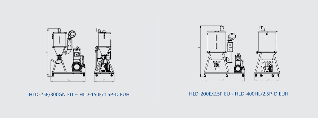 Note: When the photoelectric hopper configuration is selected, the model reference is as follows: For example, the HLD-300HL/2.5P-D EUH machine is equipped with photoelectric hopper configuration, the model is: HLD-300HL/2.5P-DE EUH