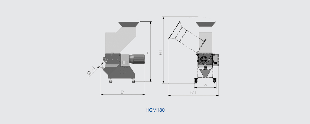 HGM180 series of medium speed crusher for a variety of plastic materials, crushing and reusing, including plastic scrap, pouring material for soft chlorine, nylon, ABS and other soft and hard plastic. The machine is compact, handsome in appearance, easy to operate, turn the knife to optimize the design to minimize energy consumption, higher cutting efficiency.