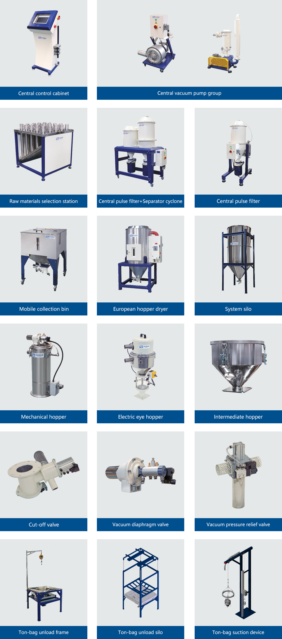 Common parts of central feeding system Production line of tray crushing weighing and bagging Hot air drying conveying solution Dehumidify conveying solution